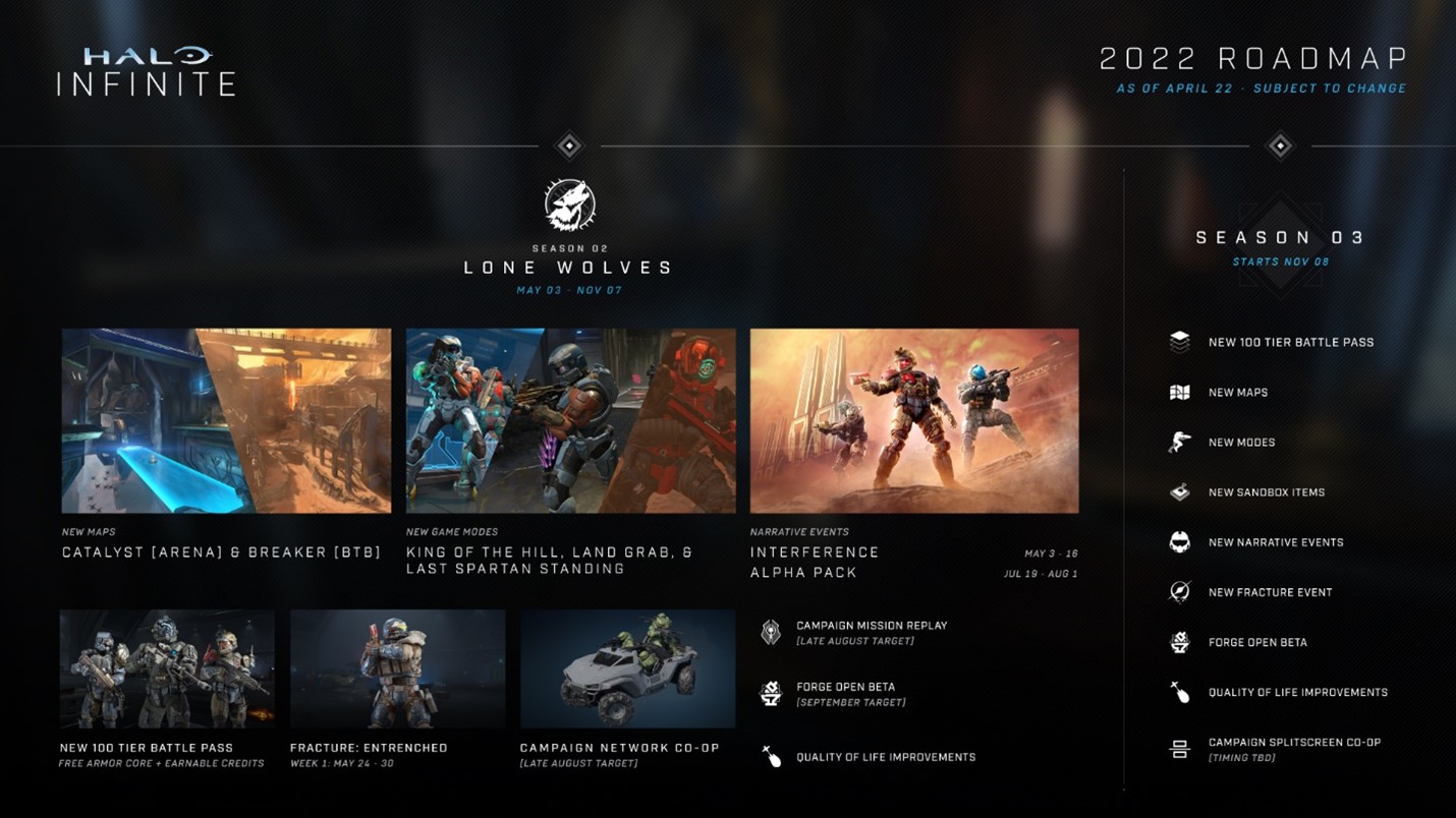 En la publicación de abril en Halo Waypoint, 343 ha compartido más información sobre la Temporada 2 de Halo Infinite, así como qué pueden esperar los jugadores en lo que resta de 2022. Entre las actualizaciones clave se incluyen: