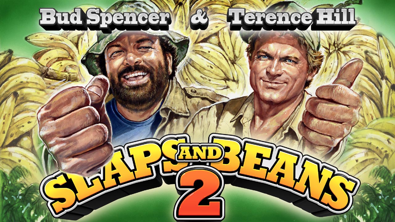 Cuando arrancamos el juego y suena el tema Banana Joe de Oliver Onions ya nos queda claro que Bud Spencer & Terence Hill – Slaps And Beans 2 pasa de ser beat’em up del motón a ser un fiel reflejo de la veintena de películas que se filmaron con esta pareja como protagonista. El argumento es una sucesión de situaciones que van uniendo en un mismo producto las tramas de sus más grandes éxitos. Pasaremos de las caribeñas islas de Quien tiene un amigo tiene un tesoro y Banana Joe, por las calles de la Miami de Dos Superpolicias en Miami o el centro deportivo de Y si no nos enfadamos. Las peleas tienen el mismo ritmo pausado y tono cómico de los filmes, los golpes que usamos son los mismos que veíamos ejecutar con brutal gracia a Bud Spencer y las cabriolas usando los elementos del escenario, cuando quieren salir, son idénticas a las que hacía Terence Hill para suplir la falta de contundencia ante su corpulento compañero. Las multitudinarias reyertas callejeras se convierten en una divertida sucesión de puñetazos en el cogote, pisotones, patadas en la entrepierna y panderetas a dos manos al ritmo de los temas originales de las películas gracias a que esta vez, en la primera parte no pudo ser así, Trinity Team ha conseguido la colaboración de Oliver Onions para poder repartir mamporros al ritmo de Angels and Beans, Banana Joe o Dune Buggy, sonando mientras recorremos los escenarios, que imitan a la perfección, los sets de las escenas más famosas de cada película.