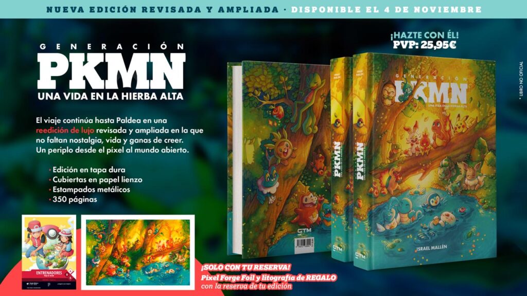 Los entrenadores Pokémon tienen una nueva cita con la nostalgia y el conocimiento. Tras el éxito de su primera edición, el libro Generación PKMN: Una vida en la hierba alta regresa con una versión revisada y ampliada que promete convertirse en un imprescindible para coleccionistas, fans veteranos y nuevos seguidores de la franquicia. Esta reedición de lujo, escrita por Israel Mallén, se lanza el próximo 4 de noviembre y ya puede reservarse en GTM-STORE.
