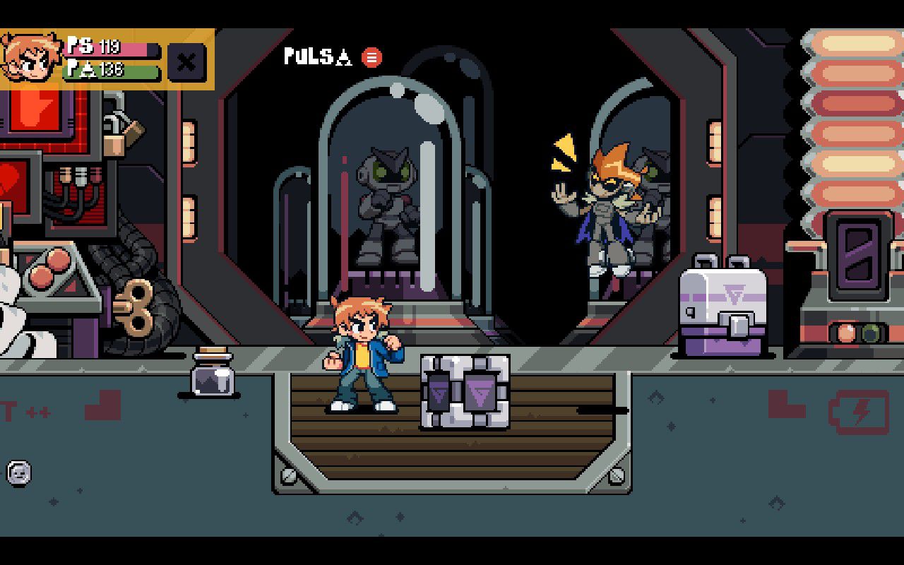 Pero, la verdad sea dicha, los justos 25 minutos que dura la demo, apenas el primer nivel del juego, dan para hablar muy poco del juego. Apenas rasca la superficie de lo que es Scott Pilgrim EX. La historia para nada tiene que ver con la novela gráfica al que debe el nombre y Tribute Games toma el camino del medio imaginando una posible continuación de la historia a partir de los hechos que ocurrieron tras el 6 tomo publicado en 2010. Los Sex Bob-Omb se encuentran ensayando en la casa de Stephen Stills preparándose para la actuación de esa misma noche cuando aparece el malvado Metal-Scott, una muy poco velada y pero muy agradecida referencia a Sonic CD, y secuestra a toda la banda. Nuestra misión será, como ya imagináis, rescatar a nuestros compañeros. Argumento sencillo donde los haya y que, teniendo en cuenta el tipo de juego que es, no deparará muchas más sorpresas.