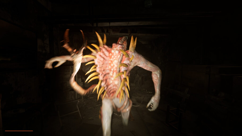 Los escenarios están muy bien trabajados. La ambientación —edificios abandonados, túneles, detalles macabros— es uno de sus puntos más fuertes y transmite inquietud constantemente. La iluminación también juega un papel importante, sobre todo en las zonas oscuras donde la visibilidad es reducida. Por el contrario, los modelos de personajes y sus animaciones faciales están por debajo del nivel del entorno. En algunas escenas se ven rígidos, poco naturales, lo que afecta a la inmersión. En este apartado se nota claramente que se trata del trabajo de una sola persona. El rendimiento suele ser estable, aunque en ciertos momentos se aprecian caídas puntuales de fluidez. El sonido, sin embargo, es de lo mejor del juego: efectos ambientales, pasos, susurros y ruidos inesperados que aumentan la tensión.